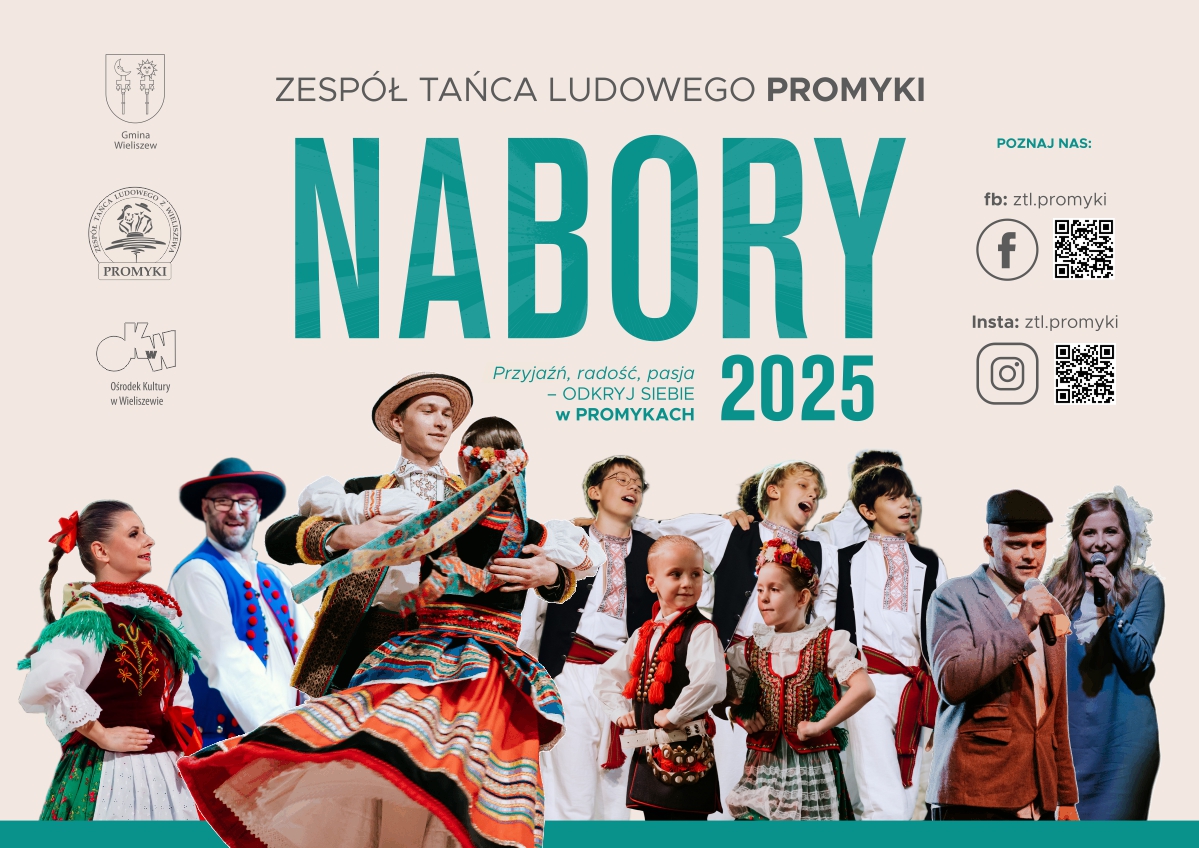 Dołącz do kulturalnej wizytówki Gminy Wieliszew i jednej z największych grup folklorystycznych na Mazowszu! Zapraszamy do udziału we wrześniowych naborach, do (starej) hali sportowej w Wieliszewie. Poszukujemy chłopców i dziewczynki w wieku 4-6 lat, chłopców i pary w wieku 7-14 lat, panów i pary w wieku 15-26 lat, panów i panie pow. roku 26 oraz śpiewających w każdym wieku do grupy wokalnej! Odkryj siebie w „Promykach”!
