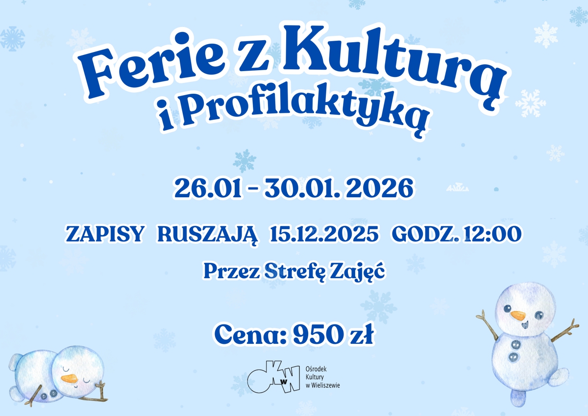 Koszt 950 zł. Przedział wiekowy 7-12 lat. Wśród atrakcji m.in. warsztaty czekoladowe, łyżwy, karting, wyjazdy do Otrębusów (Muzeum Techniki i Motoryzacji, siedziba PZLPiT "Mazowsze" w Karolinie), Muzeum Sportu i Turystyki w Warszawie, Suntago Park of Poland, Kosmo Park Warszawa